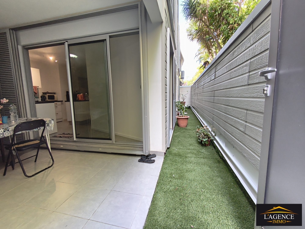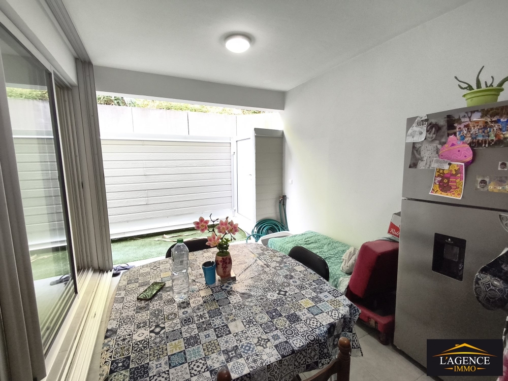 L'appartement se compose d'une entrée sur cuisine et espace de vie donnant sur une terrasse couverte de 18 m² incluant un espace buanderie indépendant.