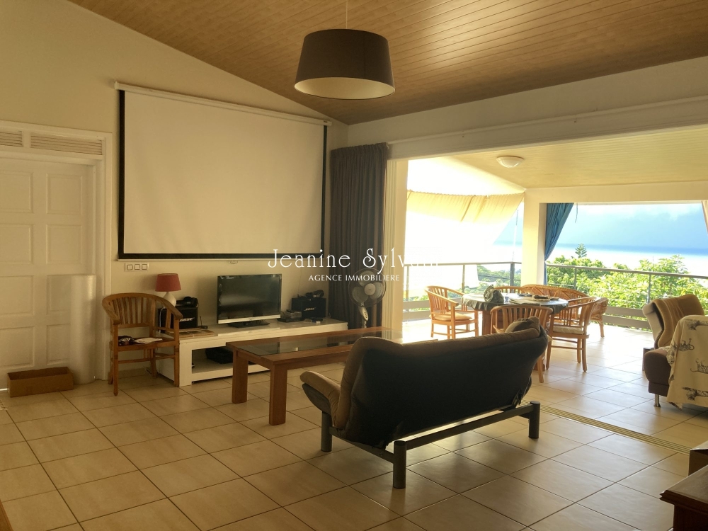 Sur les hauteurs de Super Mahina, belle maison récente sur un terrain arboré et clôturé avec vue mer, comprenant un salon, une cuisine équipée, une arrière cuisine, 2 chambres climatisée dont une parentale avec salle d'eau attenante, une salle d'eau, puis au R-1, une chambre climatisée et sa salle d'eau, une buanderie.