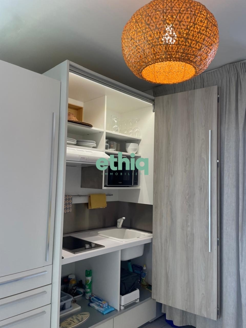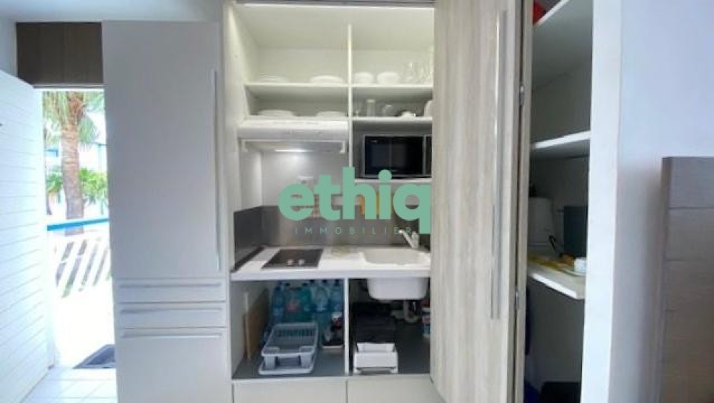 Idéal pour un investissement locatif saisonnier, ce studio d'angle de 26 m² offre une vue mer exceptionnelle et bénéficie d'un espace légèrement plus grand que les autres logements du complexe, avec une kitchenette entièrement équipée et un emplacement prévu pour un canapé-lit en plus du lit principal (capacité jusqu'à 4 personnes).