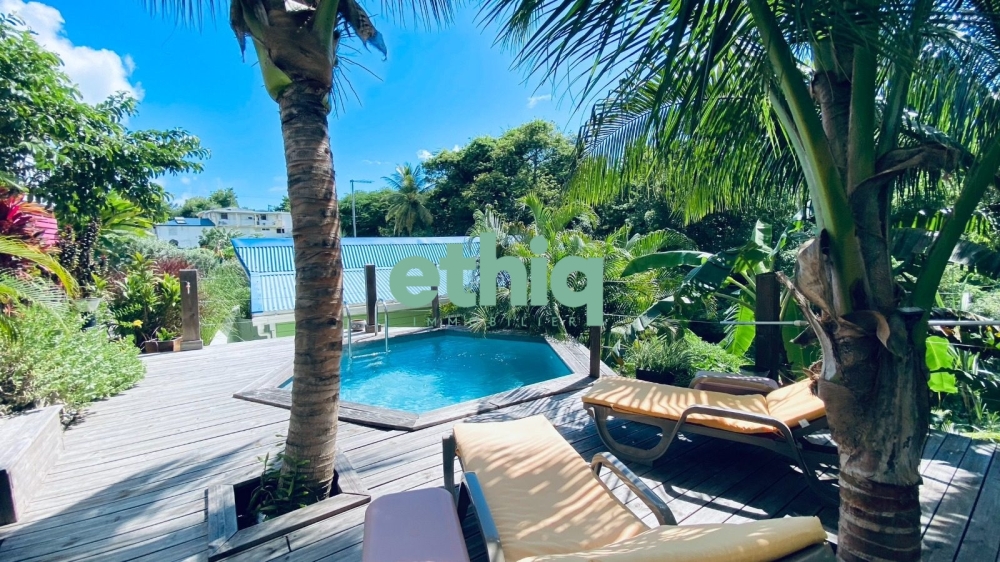 Implantée sur 1 000 m² entièrement arborés et sans vis-à-vis, la propriété offre charme, intimité et ambiance tropicale.