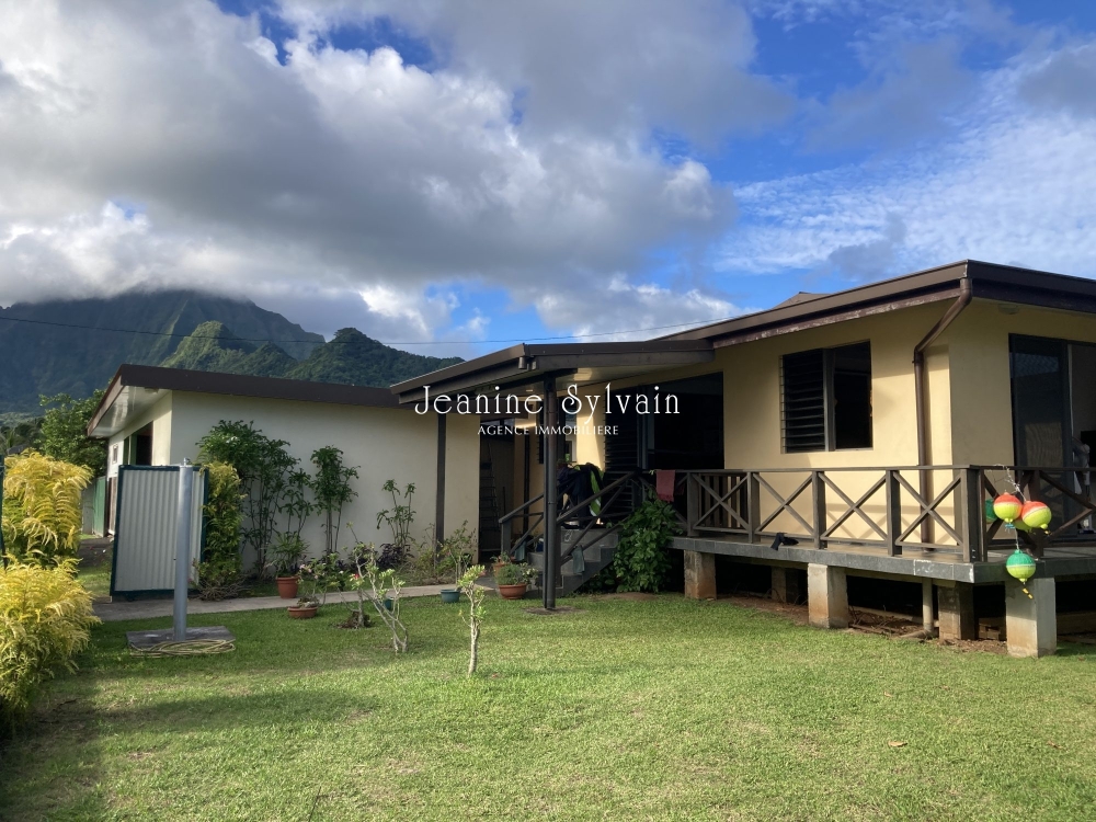 A Maatea, à 15min du quai de Vaiare, en bord de mer devant une magnifique plage de sable blanc et beau lagon, une grande propriété de 3250 m² entièrement plate et clôturée avec une grande maison sur pilotis de 280m2 comprenant 5 chambres, un salon, une cuisine équipée, 2 salles d'eau. 1 bungalow indépendant avec salle d'eau et 2 grand espaces garage couvert.