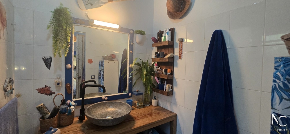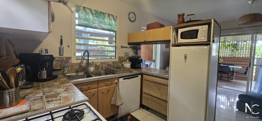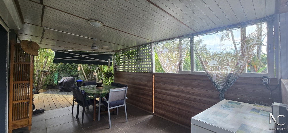 Située au pied du Mont-Mou, sur un terrain plat et clos de 5 ares, villa traditionnelle F3 offrant : séjour, cuisine ouverte aménagée, 2 chambres climatisées avec placard, salle d'eau, wc, buanderie. En extérieur, une terrasse couverte de 20 m² prolonge le séjour et une véranda de 25 m² donne accès au deck de 35 m² entourant la piscine.