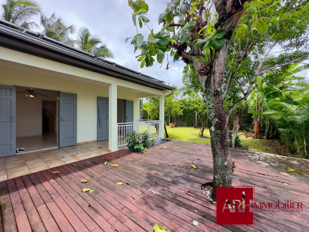 Cette maison de plain-pied comprend un séjour de 22 m², une vaste cuisine aménagée de 16 m², un dégagement, trois chambres dont deux climatisées qui ouvrent sur la varangue, une salle de bains, un WC indépendant.