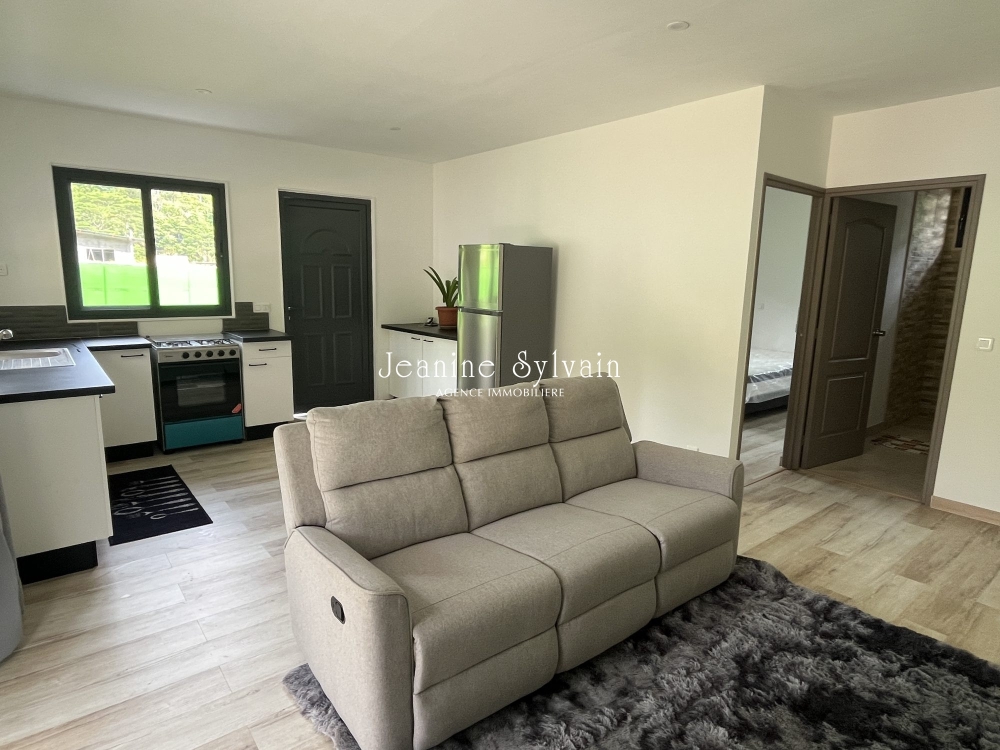 Au calme, dans un environnement verdoyant, une maison neuve de 45m2 habitable comprenant un salon, une cuisine équipée, une chambre, une salle d'eau. Une terrasse couverte de 15m2 et un garage couvert avec coin buanderie. Jardin entretenu et clôturé. Portail manuel.