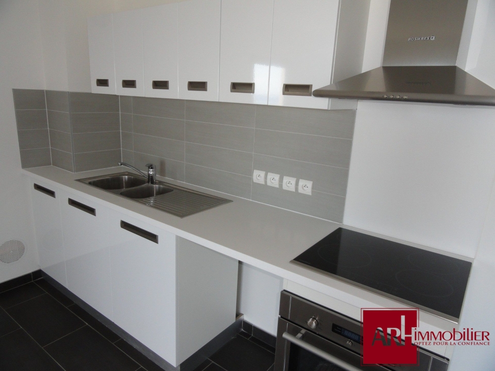 une entrée, un séjour avec cuisine équipée (plaque, four, hotte), une chambre climatisée avec placard, une salle d'eau avec douche à l'italienne et wc. (photos non contractuelles)