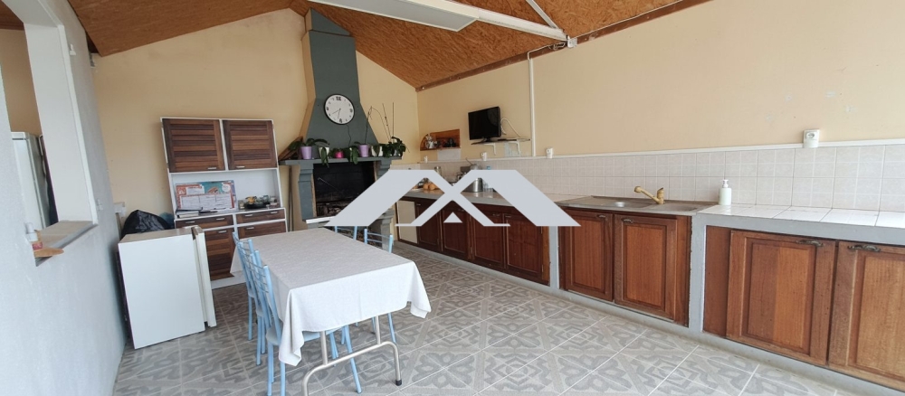 Dès l'entrée, vous découvrirez une spacieuse pièce de vie salon / salle à manger de 54 m², baignée de lumière naturelle, avec de belles hauteurs sous plafond qui renforcent la sensation d'espace et de confort. Le tout sublimé par le bleu de l'océan, visible depuis les ouvertures, pour une atmosphère apaisante au quotidien.La maison dispose également d'une cuisine équipée de 12 m², fonctionnelle et conviviale.