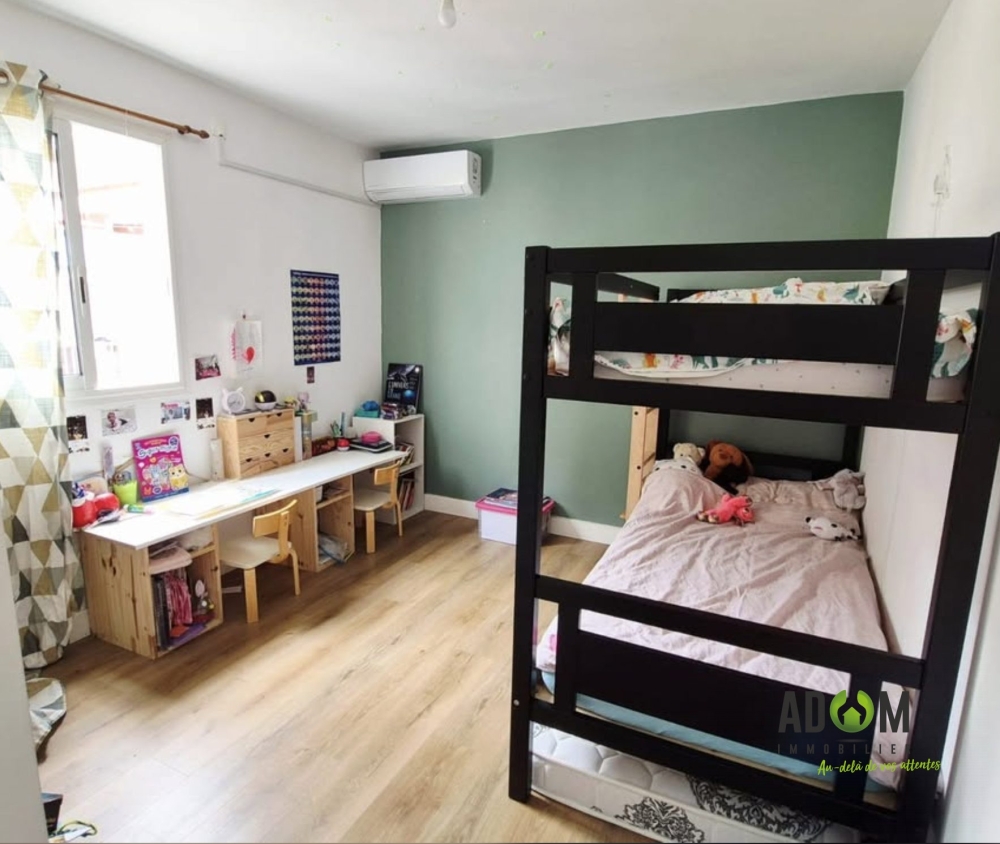 A l'étage, vous disposerez d'un espace bureau, de deux chambres avec dressing dont une climatisée, une salle de bain avec baignoire et un toilette.