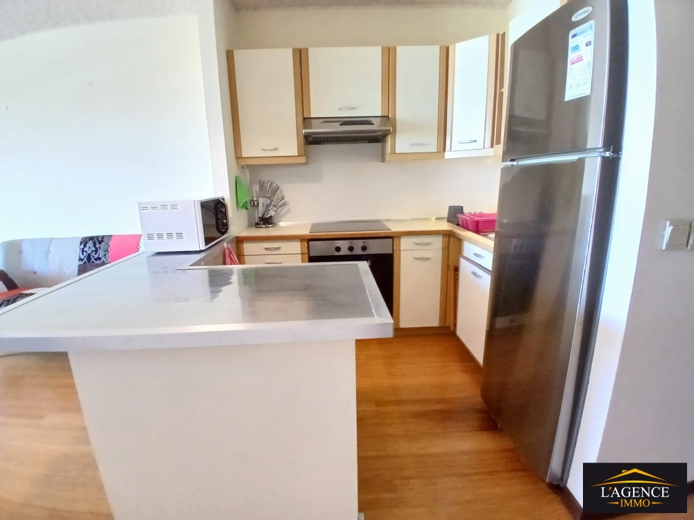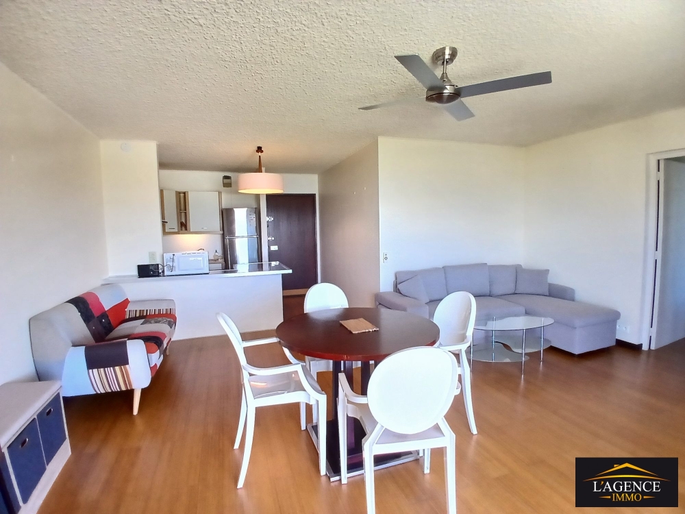 À louer – Appartement meublé F2 d'environ 48,10 m² situé dans la Tour Île de France (Tour MOARO), à seulement quelques centaines de mètres de la plage, des restaurants, du lycée, du collège et de toutes les commodités. Ce bien se compose d'une cuisine aménagée et équipée, d'un séjour, d'une chambre climatisée avec placards, d'une salle de bains avec WC, ainsi que d'une terrasse couverte d'environ 6 m².