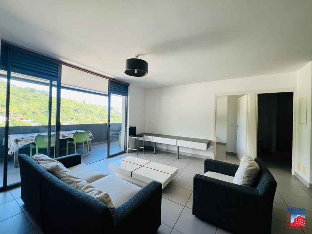 A proximité de toutes commodités , bel appartement, F3 de 85.6m2 composé d'un grand salon donnant sur une cuisine équipée, deux chambres et une salle d'eau avec WC. L'appartement dispose également d'une grande terrasse avec une vue imprenable sur la nature, et d'un garage couvert avec deux places de parking