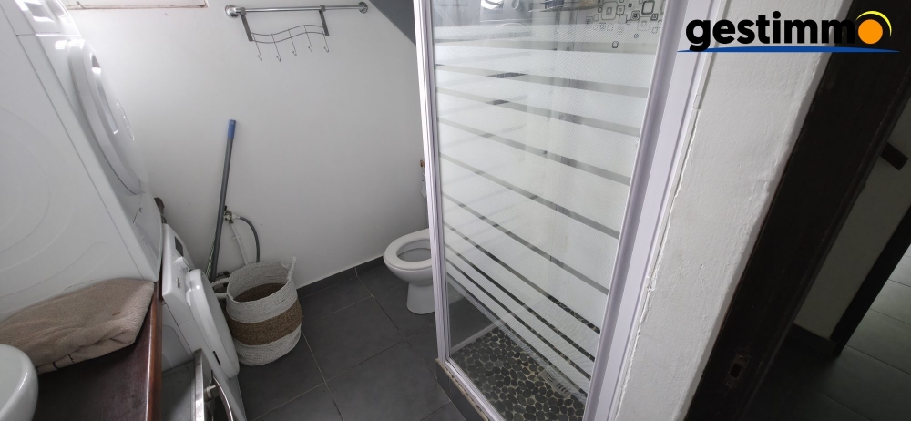 Le logement se compose d'une entrée ouvrant sur une cuisine équipée (plaque de cuisson et four), d'une chambre climatisée, ainsi que d'une salle d'eau avec WC.À l'étage, une mezzanine climatisée offre un espace supplémentaire confortable, disposant de sa propre salle d'eau privative.