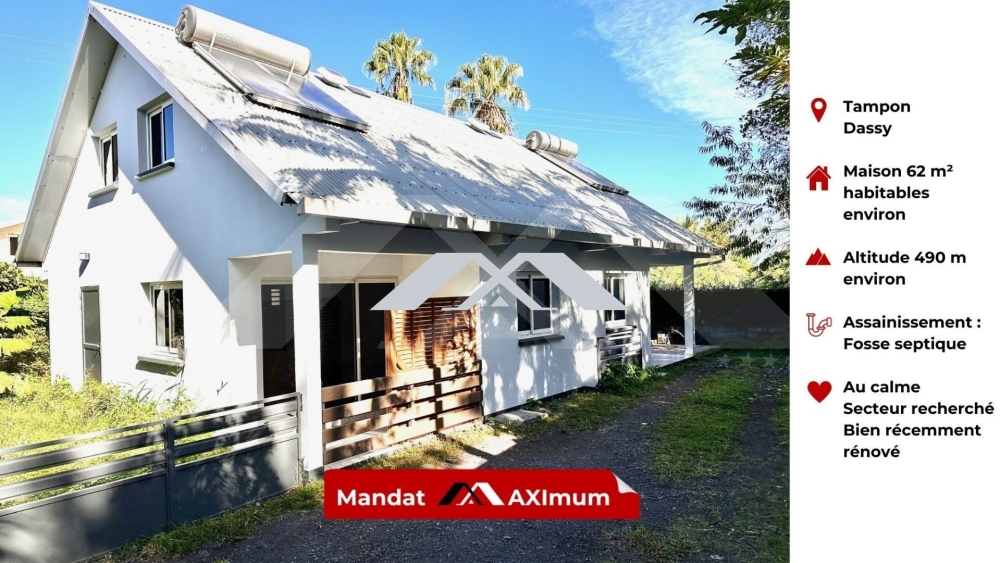 MAXImmo vous propose sur le secteur recherché du Dassy, Trois Mares , Tampon en fond d'impasse, cette maison mitoyenne d'environ 78,55 m² utiles (62,25 m² carrez).
