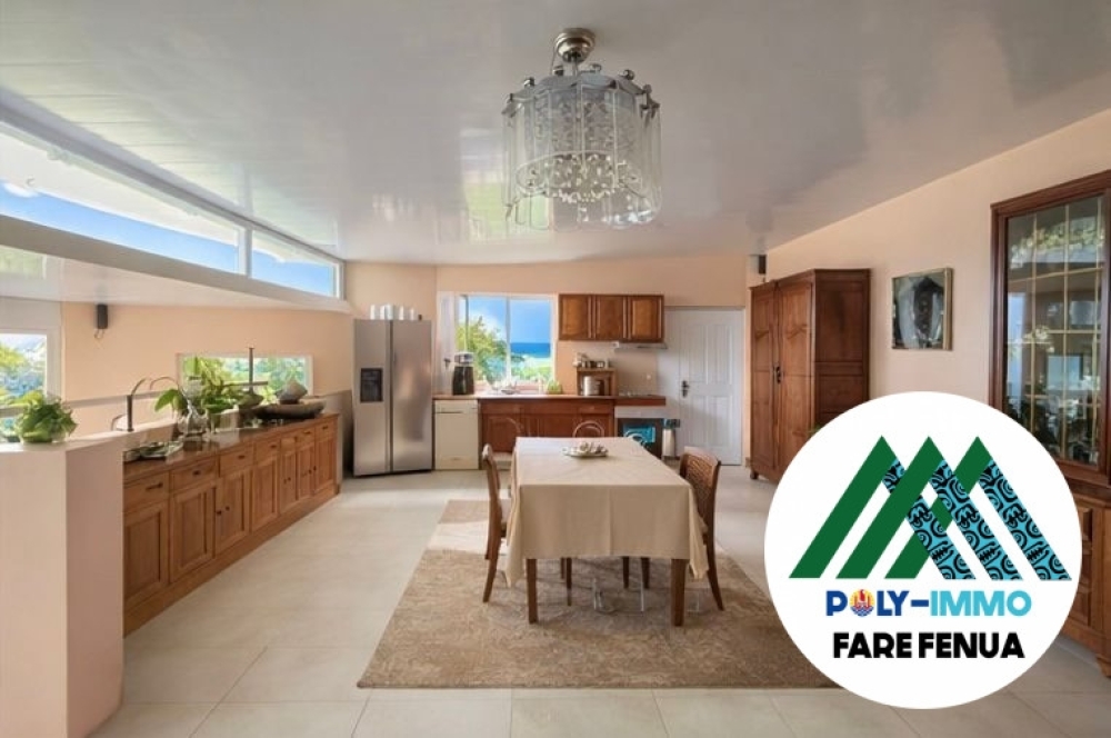 Sur les hauteurs de Haapiti, cette maison bénéficie d'une vue lagon dégagée et plongeante, à proximité d'une passe de surf.