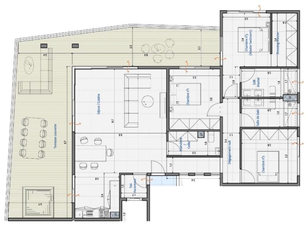 - 1 Dressing + sdb/wc attenant + accès direct à la terrasse