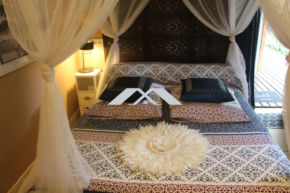 MAXImmo vous propose cette magnifique villa de standing, située dans un cadre idyllique, offrant une vie agréable dans un jardin zen avec une piscine chauffée. Construite en 1984, entretenue et rénovée au fil du temps, cette propriété allie charme balinais et modernité.