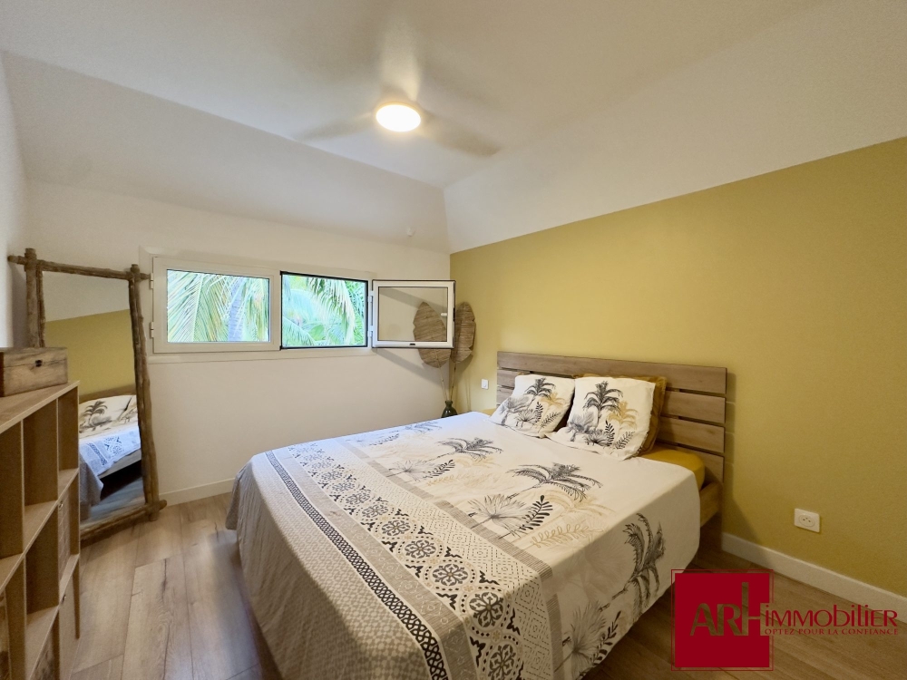 ? L'appartement comprend une entrée / dégagement, un séjour de 24 m² environ avec une belle hauteur sous plafond, une cuisine aménagée, une chambre climatisée avec placards de rangement, une salle de bains élégante et un WC indépendant, garantissant intimité et fonctionnalité. Le stationnement intérieur sécurisé complète ce bien, offrant une solution pratique pour votre véhicule.