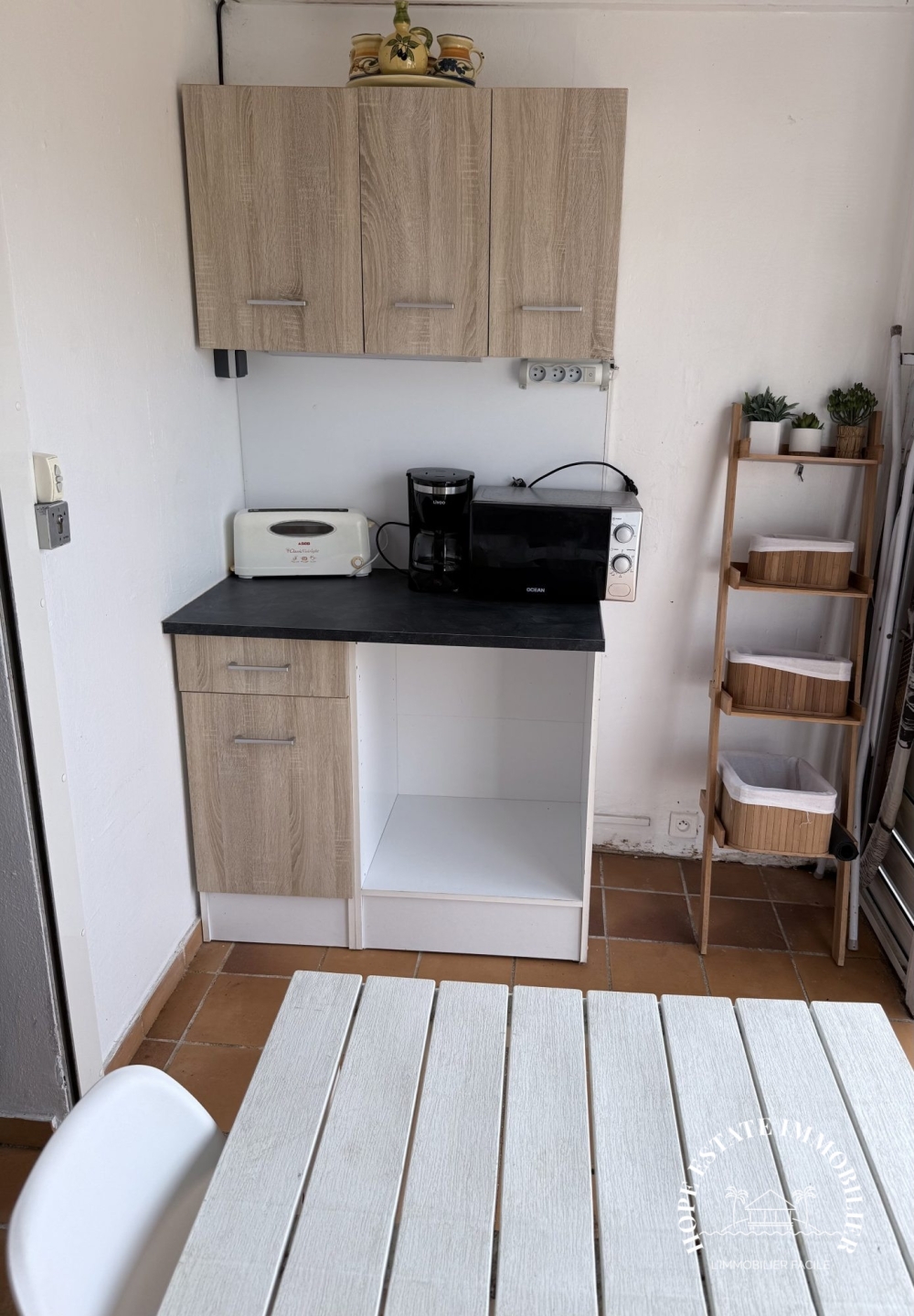 Charmant studio, vue mer, dans une résidence close parking extérieur, au RDC d'une villa, avec jardin de 2000 m2, paysagé, pour deux personnes, parfaitement aménagé, avec cuisine sur terrasse fermée, frigo congélateur, plaque de cuisson, micro onde, toute la vaisselle nécessaire, chambre avec lit en 160, téléviseur, avec chaines internationales, connexion wifi sans fil, grande salle d'eau avec douche, rangements, machine à laver le linge, avec étendoir sur terrasse, fer à repasser, table à repasser,