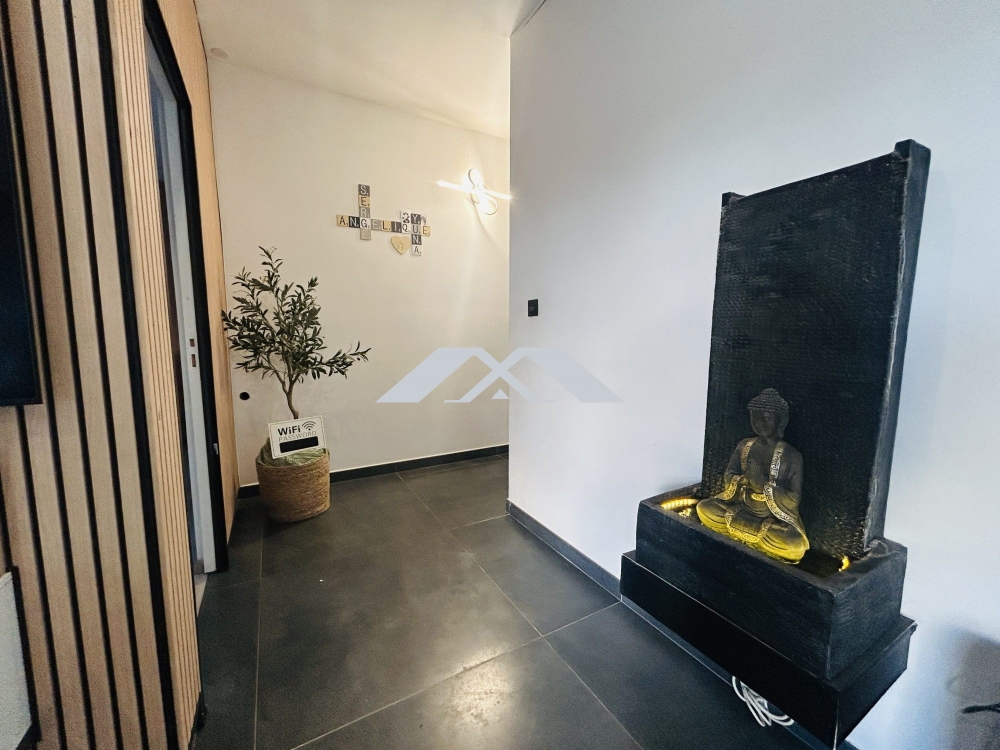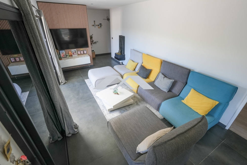 Implantée sur une parcelle de 411 m², entièrement clôturées en pierre naturelle et aluminium, cette propriété développe 115 m² habitables incluant une véranda fermée utilisable comme véritable pièce supplémentaire.