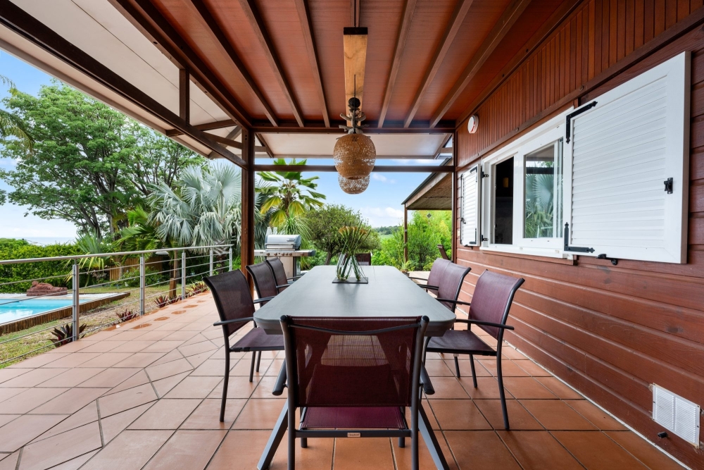 À la Rivière Saint-Louis, dans un secteur recherché et au calme, cette villa de standing conjugue volumes, confort et art de vivre. Avec 175 m² habitables (225 m² au sol), des espaces pensés pour recevoir et un extérieur soigné, elle s'adresse à une clientèle en quête d'un bien rare, prêt à profiter, sans compromis.