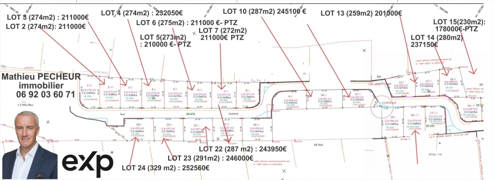 LOT 14 : 280m² / 237 150€LOT 15 : 232m² / 178 000€