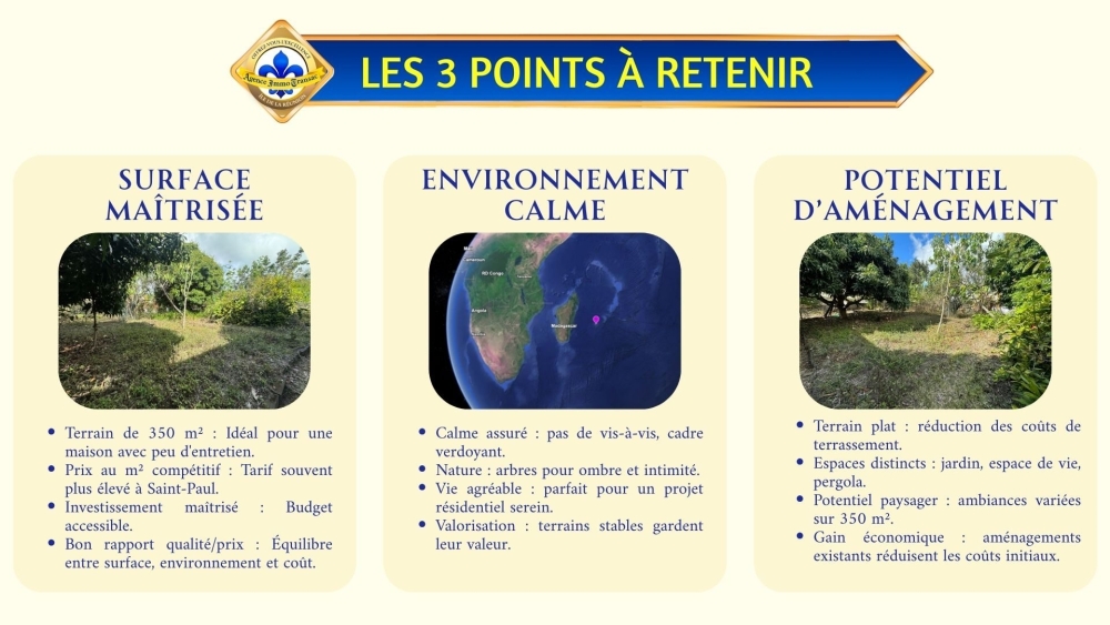 Ce TERRAIN de 350 m² à Saint-Paul bénéficie de :