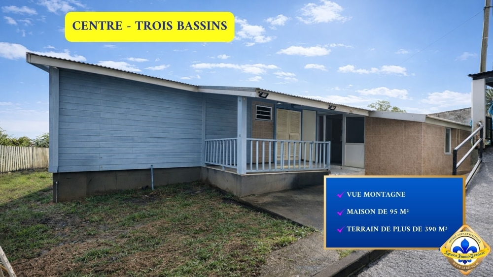 RAPPORT QUALITÉ/PRIX RARE À TROIS-BASSINS : Une maison de plain-pied de 95 m² avec 3 chambres, varangue de 25 m² et 393 m² de terrain clôturé à ce niveau de prix, c'est une opportunité difficile à retrouver sur le secteur. Un bien à voir avant qu'il ne parte.