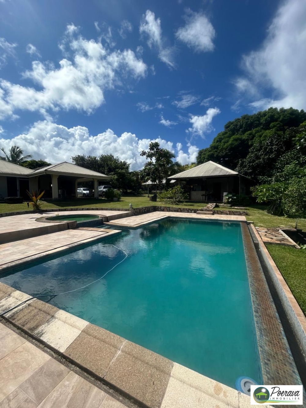 TOAHOTU - Sur un terrain de 1841 m2 plat, nichée dans un nid de verdure, vous serez séduit par cette maison familiale de plain-pied offrant une cuisine ouverte sur séjour donnant sur la terrasse, 4 chambres et un bureau, 3 salles d'eau, un bungalow indépendant.