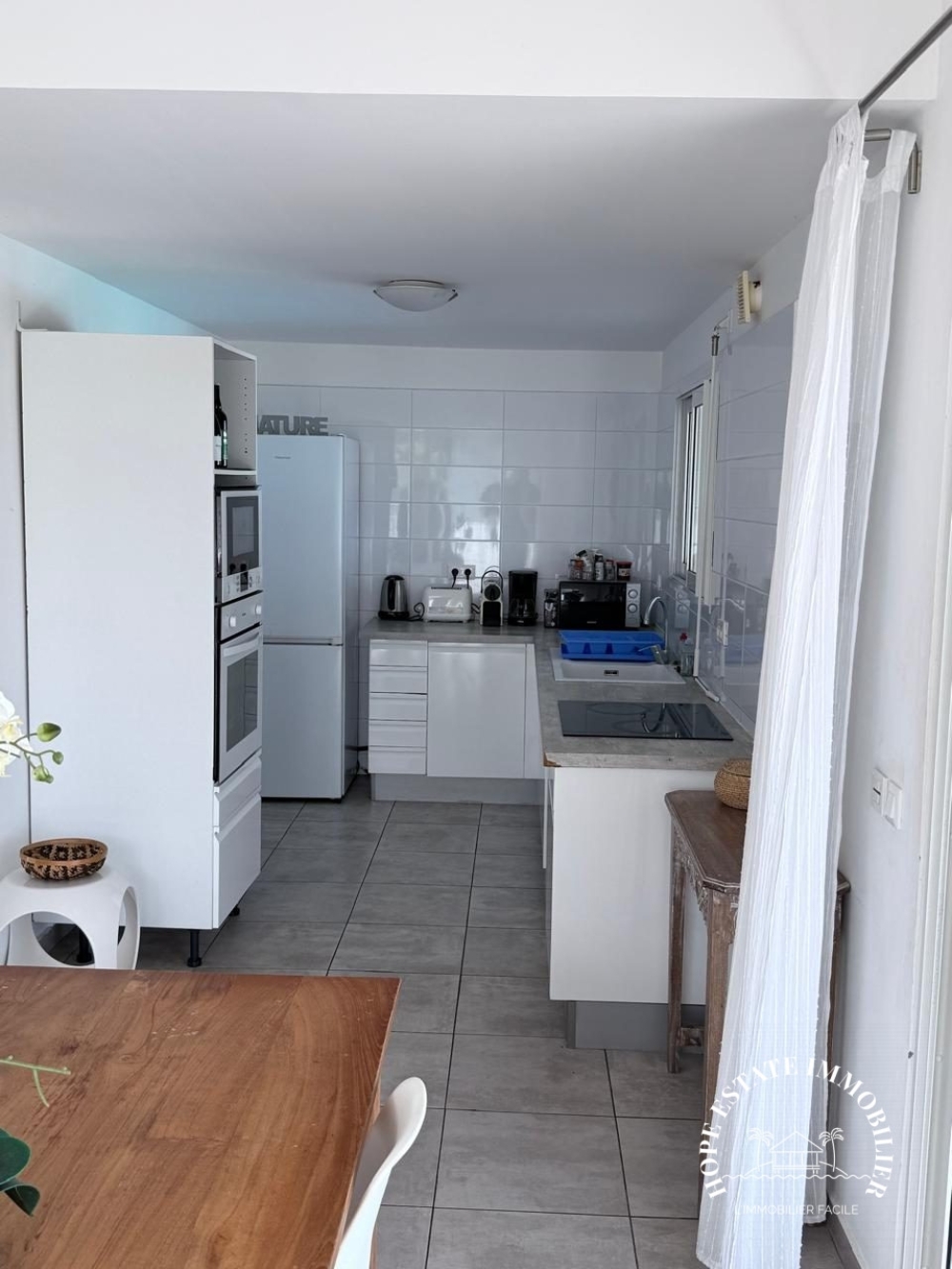 beau séjour et cuisine aménagée, avec tout le confort, machine à laver le linge