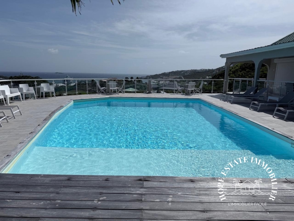 située dans une résidence de 6 appartements cette charmante et agréable maison dispose d'une grande et belle terraqqe aménagée, et bénéficie d'une vue magnifique sur toute la baie d'oyster pond, elle est parfaire pour une famille, et dispose de trois vraies chambres, une au rdc, et deux à l'étage avec un total de deux salles d'eau