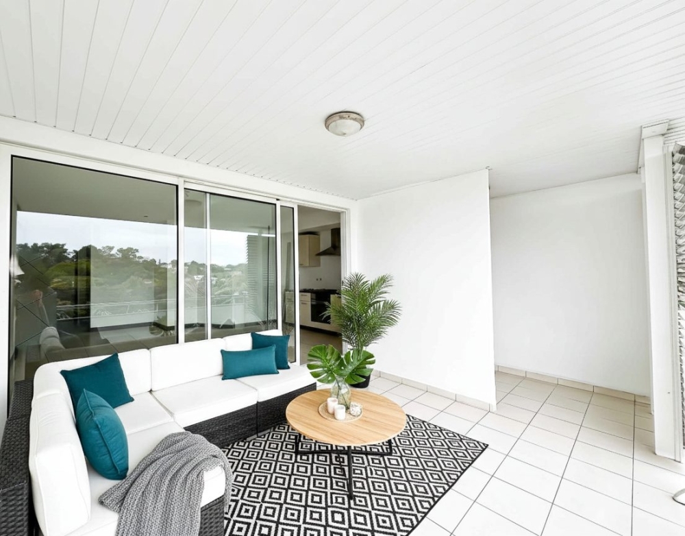 Idéalement situé dans le quartier du PK7, l'agence D'CLIC IMMO vous propose en EXCLUSIVITÉ un appartement F2 de 56 m², dont 15 m² de terrasse couverte, offrant un cadre de vie confortable, lumineux et fonctionnel à proximité des commodités.