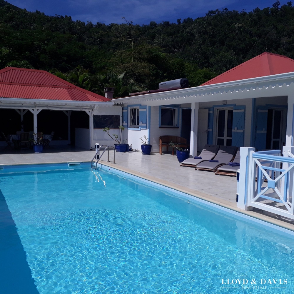 Cette spacieuse et agréable maison de style antillais située dans un secteur préservé à l'écart des afflux touristiques jouit d'une vue imprenable sur la Baie des Saintes.