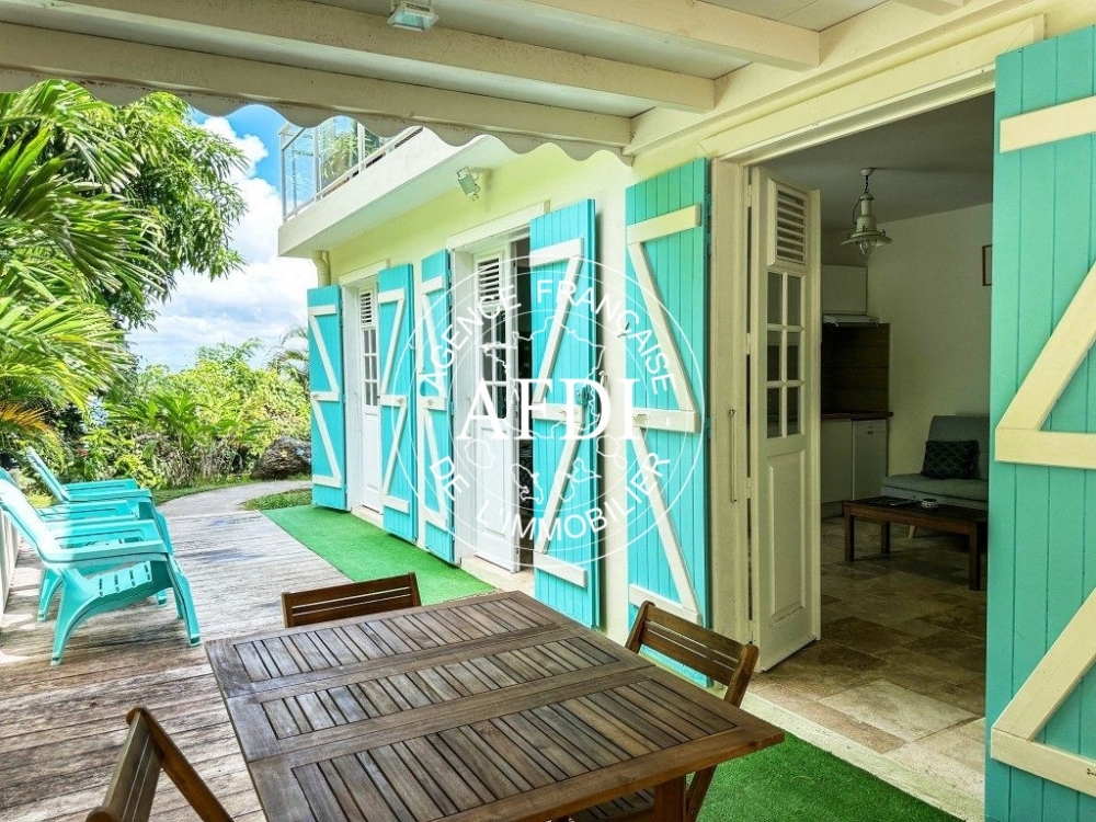Un large carbet vous permet de profiter de l'extérieur à l'abri du soleil, tandis que la partie découverte vous permettra de profiter des rayons du soleil.