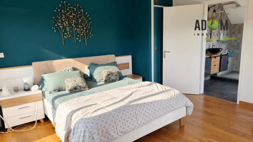 À l'étage, trois chambres dont une suite parentale, une salle d'eau et un WC indépendant composent un espace nuit intime et apaisant.