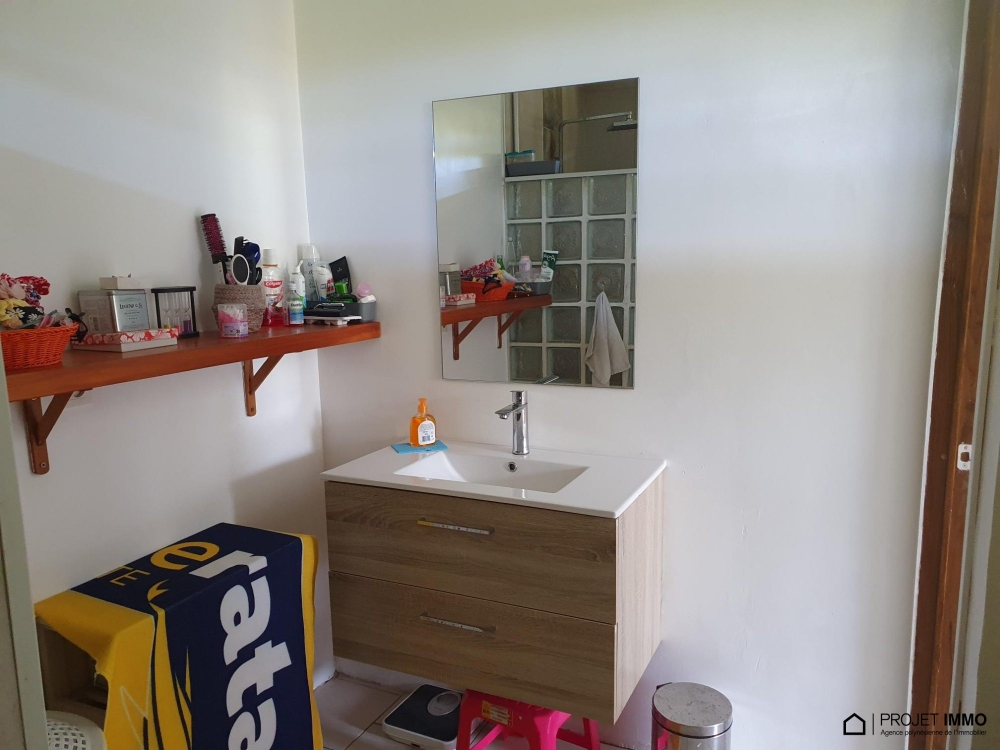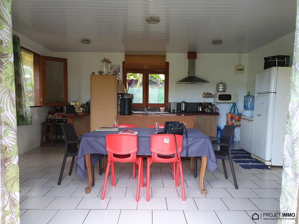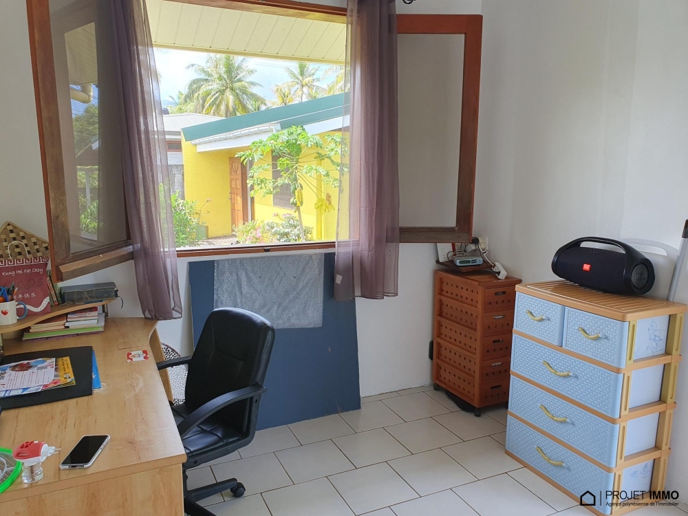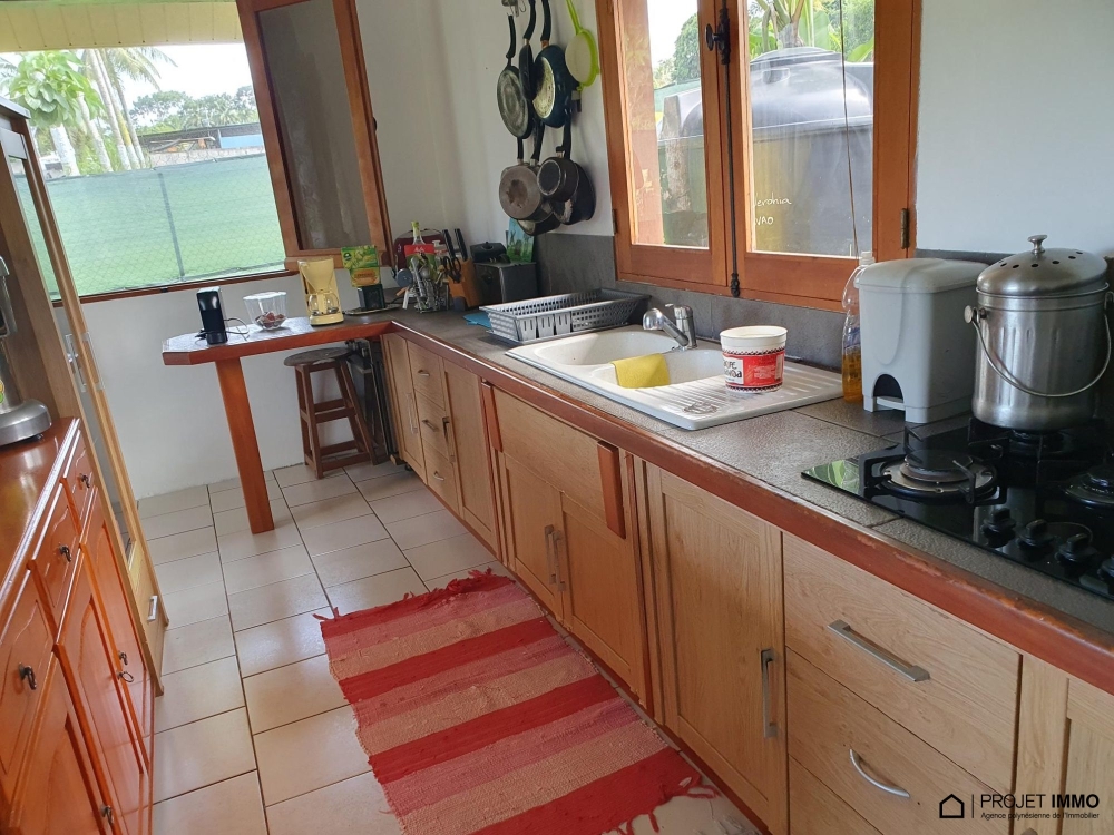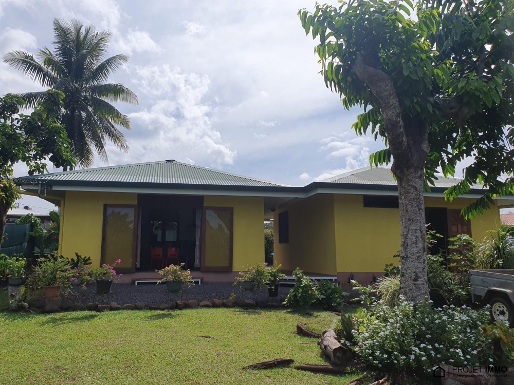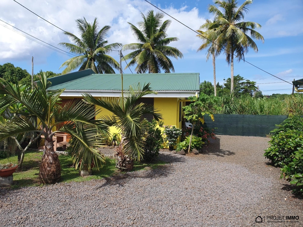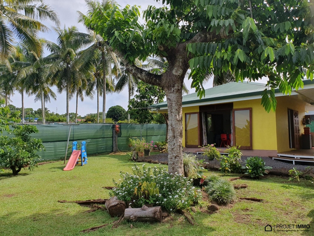 Cette maison F5 de 98m² habitable située à Toahotu, à 5mn de Taravao, sur un terrain clôturé et arboré de 697m² avec un accès mer en bout de servitude se compose de: