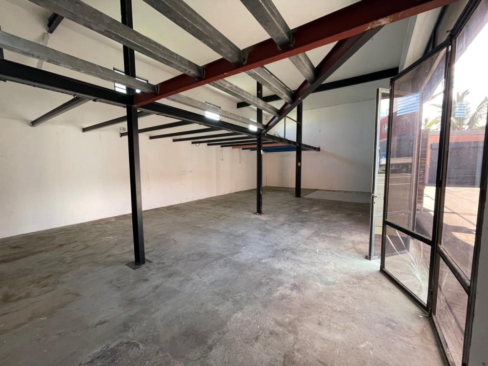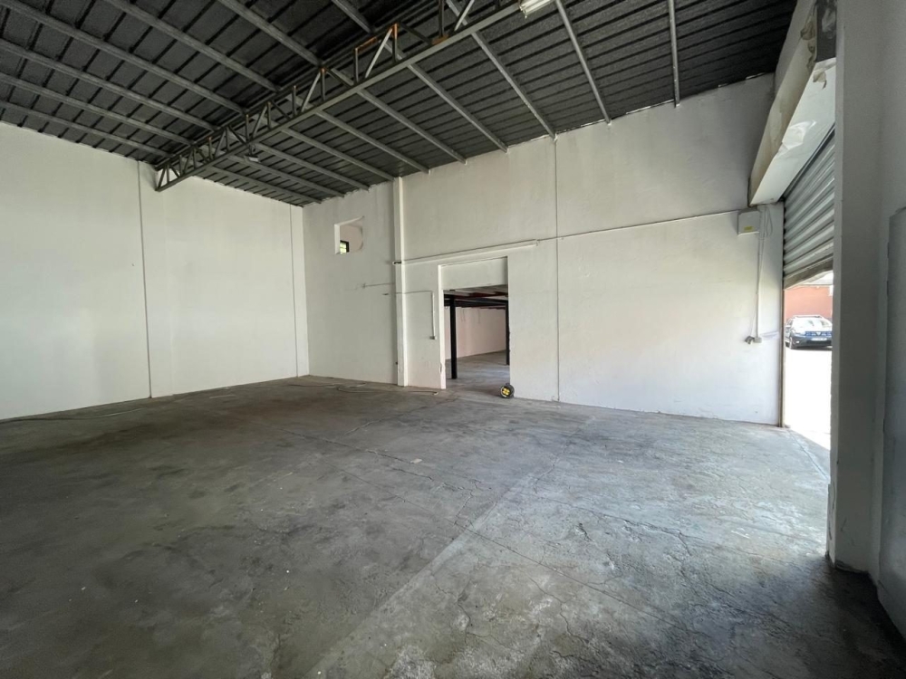 Il se compose en deux parties : un premier espace d'environ 85 m² et un second d'environ 105 m², sécurisés par des rideaux métalliques. La hauteur sous plafond va de 2,66 et 5 mètres.