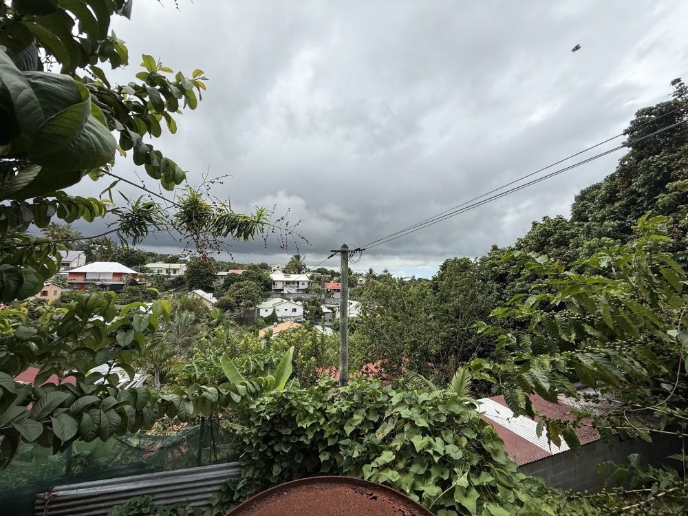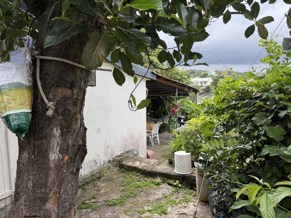 Extérieur : Une agréable terrasse couverte avec vue dégagée, surplombant un petit jardin paisible.