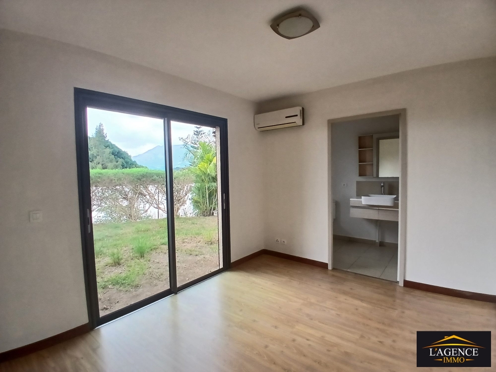 Au sein d'un lotissement calme, villa F4 d'environ 100m² composée d'un séjour lumineux, d'une cuisine équipée et aménagée, d'une buanderie, d'une salle d'eau, d'un WC indépendant, de trois chambres climatisées avec placards dont une parentale avec salle d'eau et WC et d'une terrasse couverte d'environ 15m² donnant sur un jardin clôturé