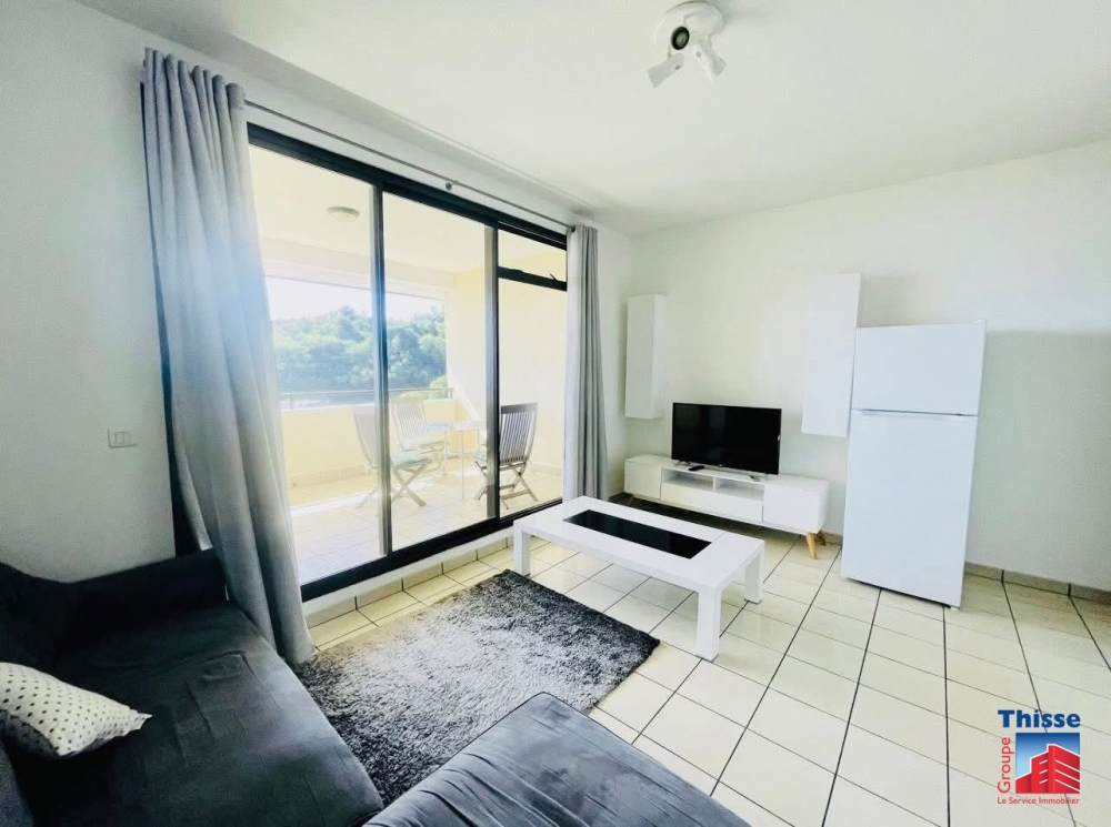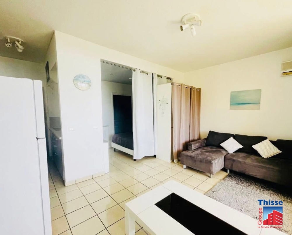 Dans une résidence calme avec piscine, beau studio de 33m2 comprenant un salon, un accès coin cuisine aménagée et équipée et une salle de bain.L'appartement dispose d'une terrasse couverte de 14m2,Il est loué avec une place de parking extérieur.