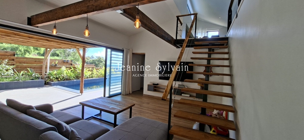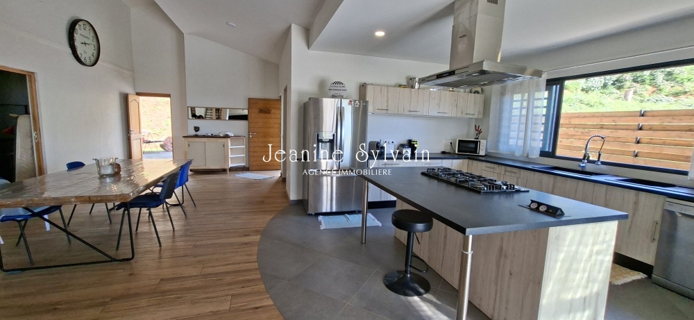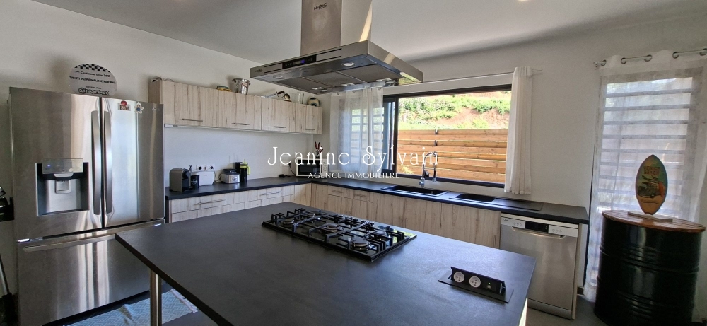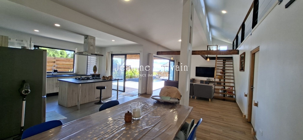 Punaauia PK12, dans un petit lotissement calme et apprécié, grande maison récente entièrement meublée et climatisée avec une entrée, wc indépendant, buanderie, belle cuisine moderne équipée et meublée avec îlot central pour plus de convivialité, un grand salon/salle à manger, 3 chambres climatisées avec dressing et avec chacune sa salle d'eau privative, une mezzanine permettant de stocker vos effets personnels avec un coin bureau.