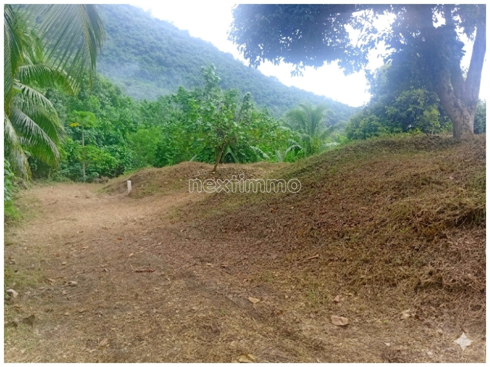 MOOREA / TEAVARO, PETITE HAUTEUR, PROCHE FERRIES, BEAU TERRAIN EN PENTE DOUCE (1.500M²), ARBORE (COCOTIERS) ET PETIT PLATEAU, VUE MER....