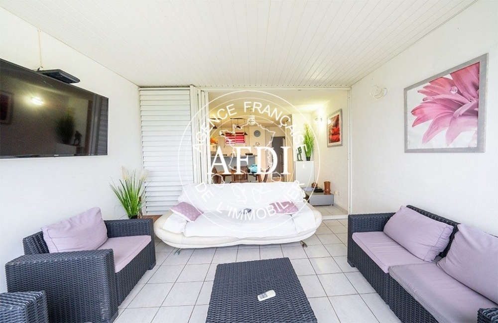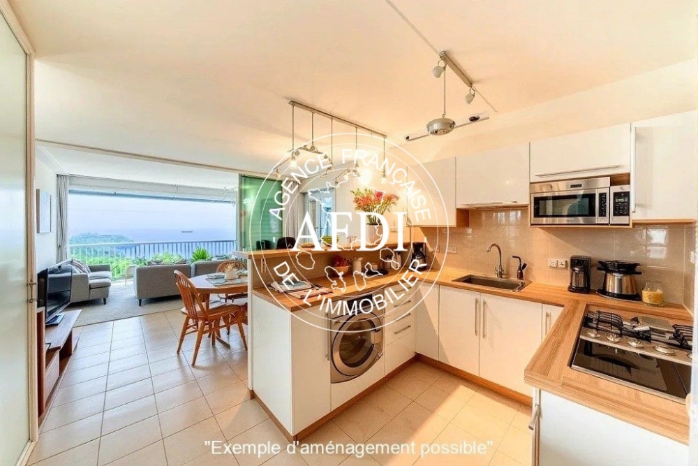 Appartement de type F3 comprenant un séjour avec cuisine américaine, deux chambres climatisées, deux salles d'eau avec wc dont une attenante à une des chambre et une belle terrasse avec vue sur ilet des Ramiers et la baie de Fort-de-France.