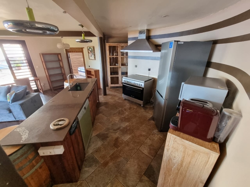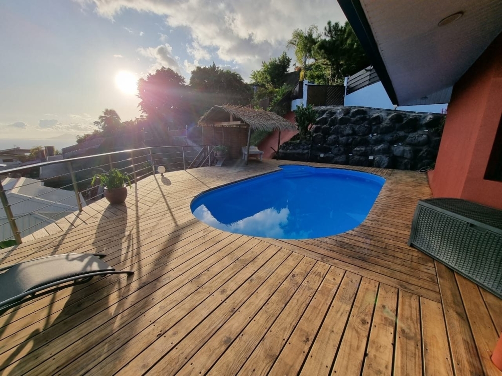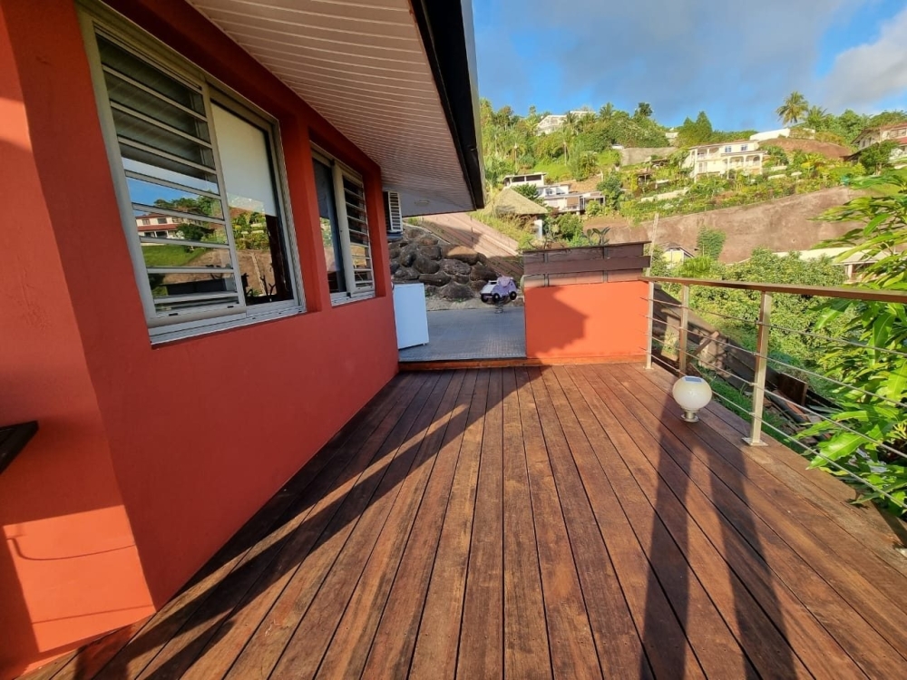 PRODUIT RARE - PUNAAUIA -TE MARUATA: Bella villa exotique d'architecte (rénovée en 2014) T4/T5 ( 160 m2) pleine vue océan , deck / terrasse de 200 m2 en bois massif, pas de vis à vis, aménagements , rénovations récentes et importantes, cuisine ouverte avec ilôt central , pleine vue sur living terrasse et mer, belles finitions, piscine avec liner béton neuf, fare poté traditionnel , P. électrique , poss de faré habitable ( 25 m2) sur l'arrière . Cave spacieuse à finaliser, ( cave à vin / home cinéma ou salle de fitness , salle de jeux..) Prix : 98 M.