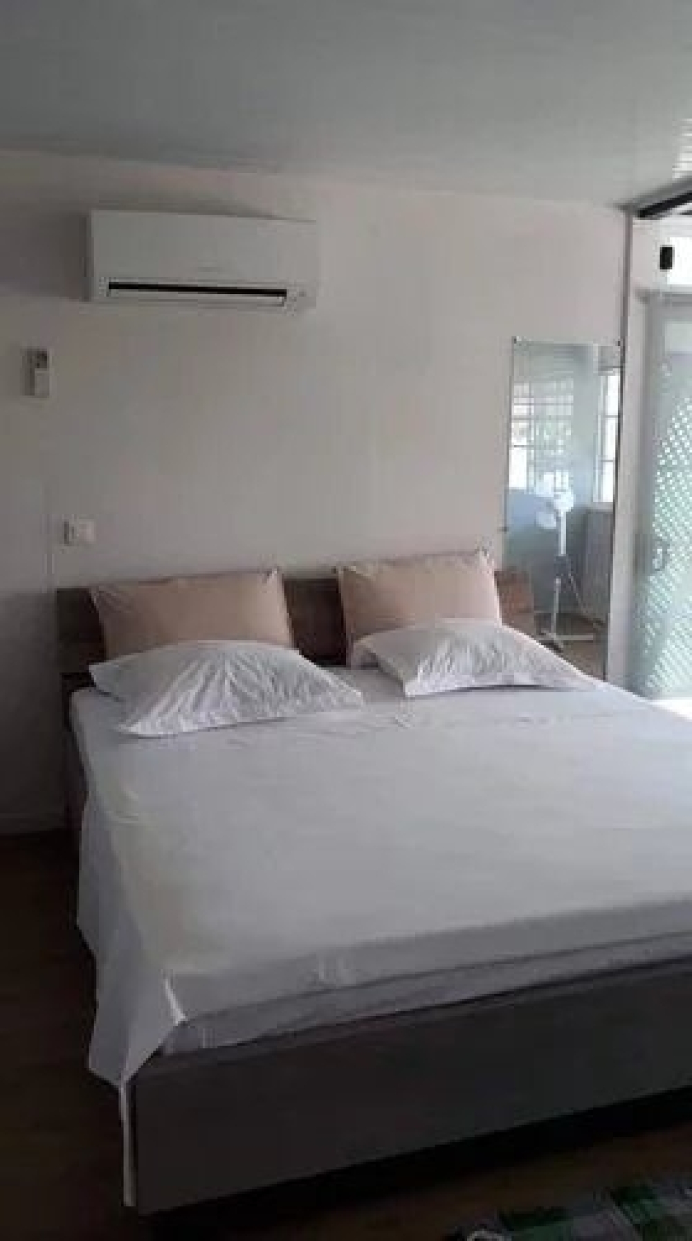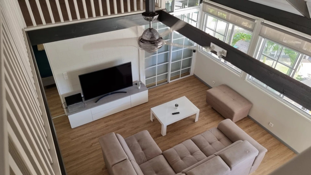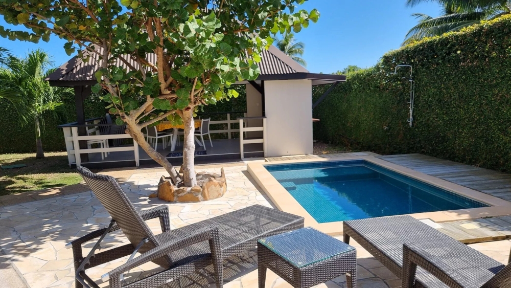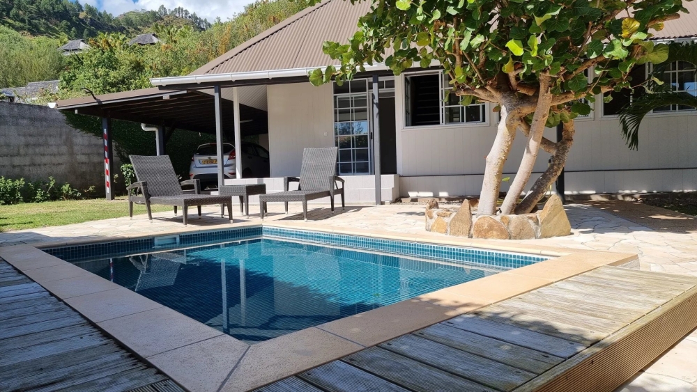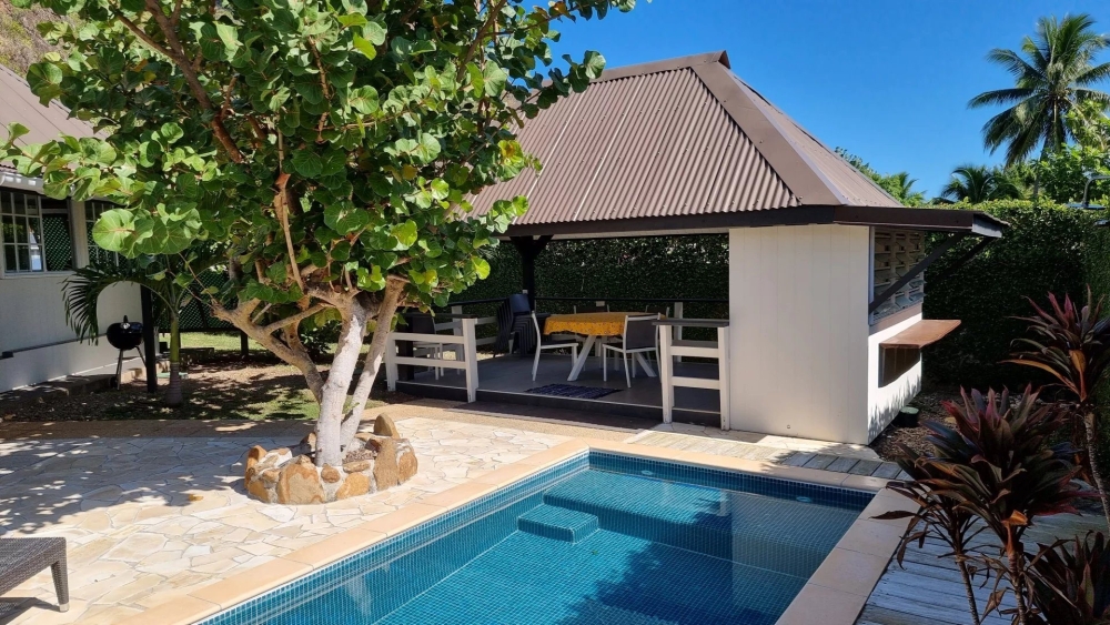 Venez découvrir cette magnifique villa avec piscine située à Moorea en Polynésie Française, disponible à la location au 1er décembre 2023. Cette propriété offre un espace nuit comprenant deux chambres climatisées avec leur propre salle d'eau, ainsi qu'une grande mezzanine avec deux espaces séparés équipés de lits et d'un coin bureau. Vous trouverez également trois espaces cuisine, idéaux pour préparer de délicieux repas en famille ou entre amis. Les trois salles de bains de cette villa vous offriront un confort indéniable. Le terrain de plus de 500m² est clôturé et bien arboré, offrant ainsi une intimité totale. De plus, vous bénéficierez d'une aire de parking privative ainsi qu'un garage, vous évitant ainsi les tracas de stationnement. Les petits plus de cette propriété meublée comprennent une buanderie, un fare poté, un chauffe-eau solaire, une cave à vin, une vidéo surveillance ainsi qu'un accès à la mer et une descente de bateau à proximité. Le montant du loyer mensuel est de 260 000 cfp, avec une caution demandée de 345 000 cfp. Ne manquez pas cette opportunité exceptionnelle !
