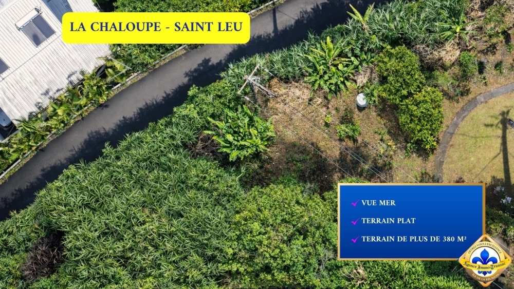 OPPORTUNITÉ à LA CHALOUPE SAINT-LEU : Terrain constructible de 380 m², TERRAIN PLAT, VUE MER et ZONE UC — à 142 310 €.