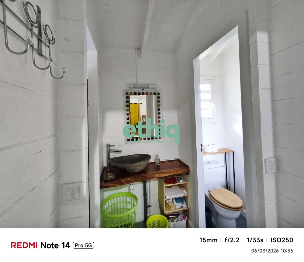 La maison principale comprend un salon de 36 m² ouvrant sur une grande terrasse en L d'environ 57 m². Elle dispose de trois chambres, d'une mezzanine de 14,7 m² pouvant servir de couchage supplémentaire, ainsi que de deux salles d'eau dont l'une a été récemment rénovée. Plusieurs climatisations sont installées dans la maison, dont certaines sont neuves ou très récentes. La cuisine aménagée est fonctionnelle et indépendante.