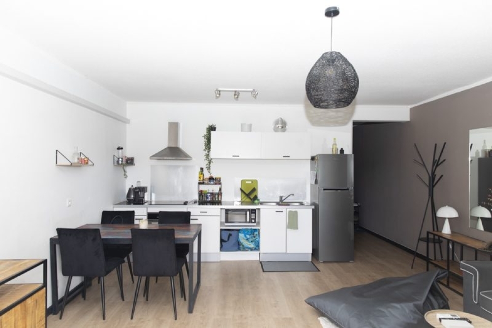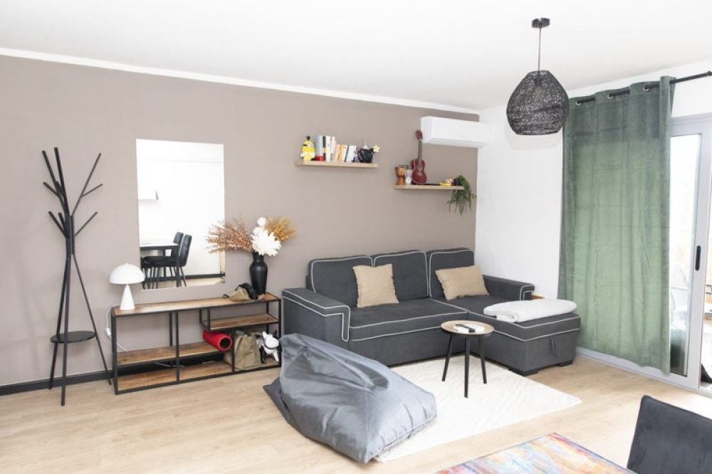 Bel appartement F2, meublé avec goût, situé au 3ème étage d'une résidence sécurisée et avec ascenseur. Le bien comprend une cuisine équipée ouverte sur le séjour, une chambre climatisée avec salle d'eau, un WC indépendant, une terrasse couverte avec un coin buanderie. Vue dégagée, pas de vis-à-vis. Une place de parking couverte.