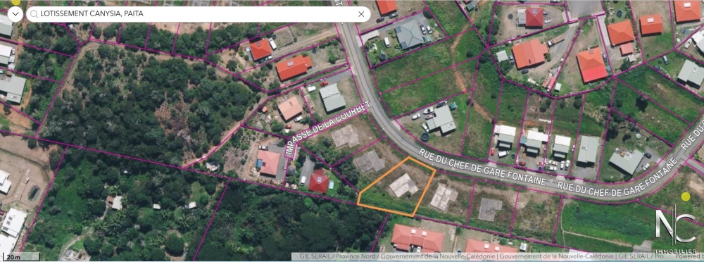 Situé au coeur du lotissement Canysia à Paita, terrain à bâtir de 7,42 ares, viabilisé et plat.