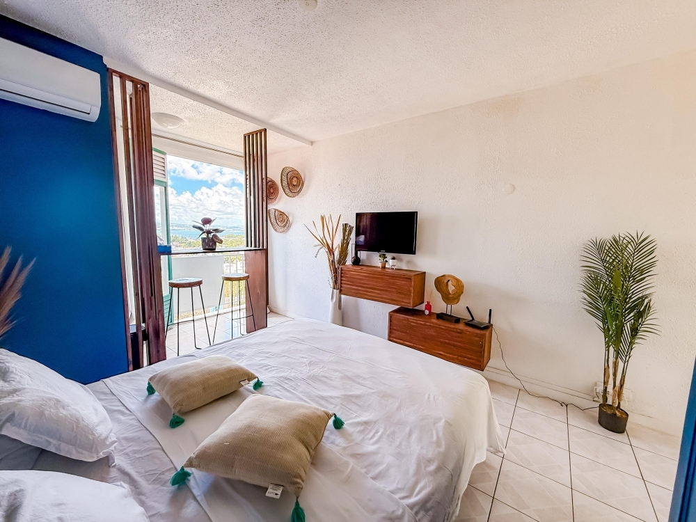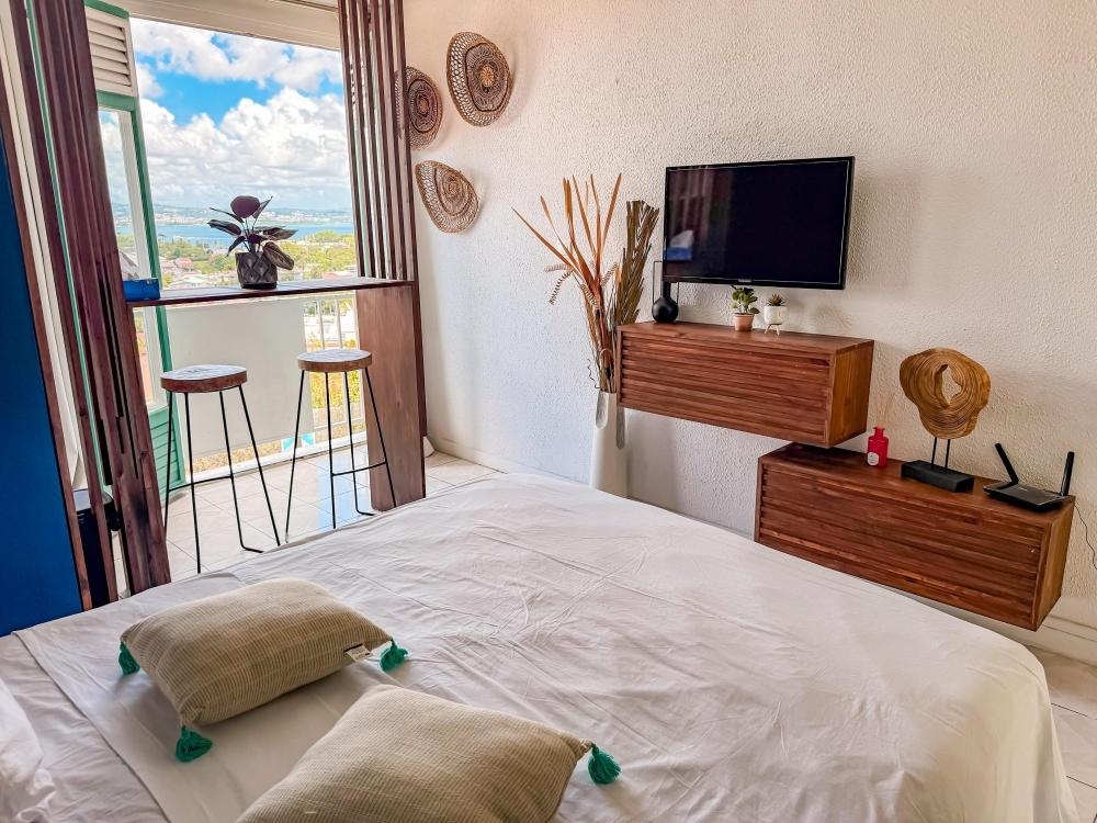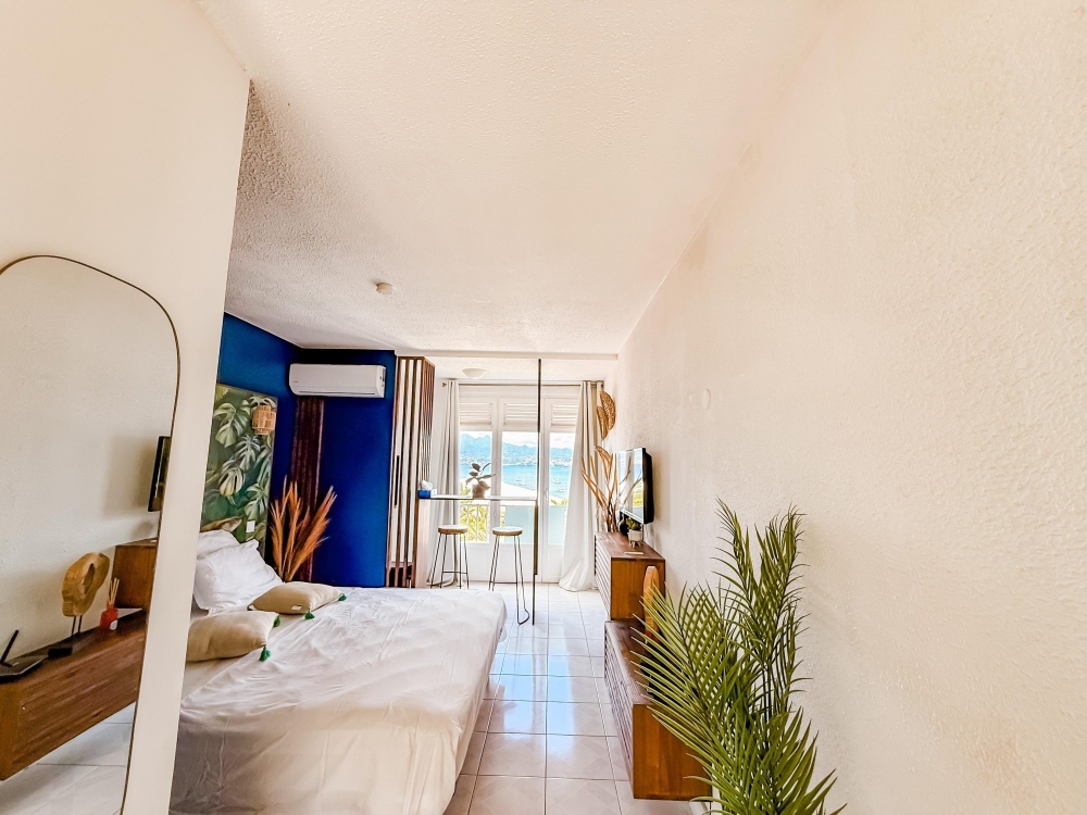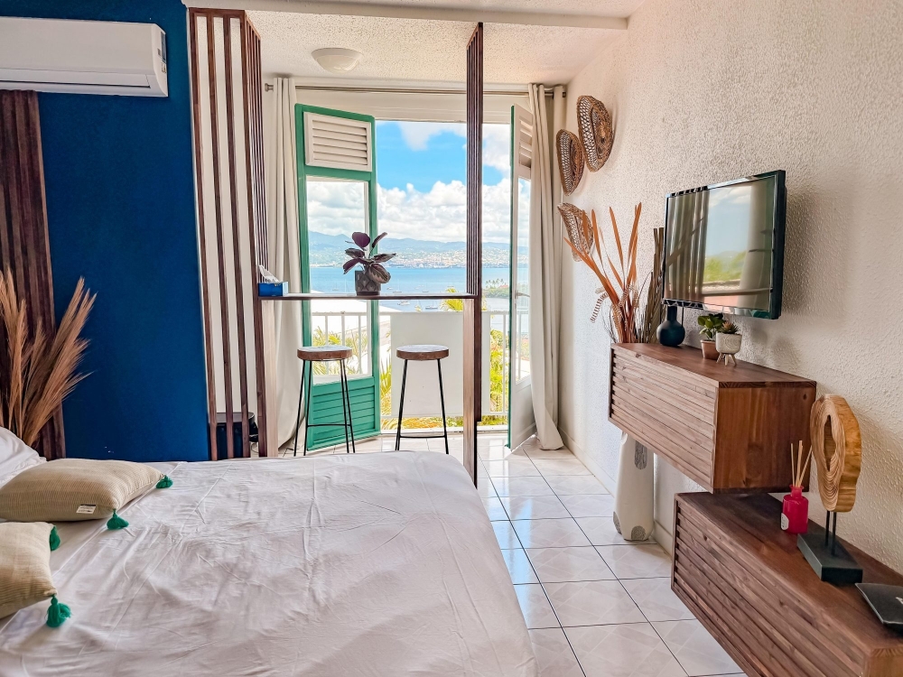 Un studio magique où chaque matin s'ouvre sur une symphonie de bleu, entre ciel infini et horizon marin... Laissez-vous porter par la brise marine et l'appel des vagues depuis votre balcon privé.