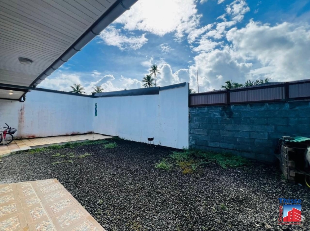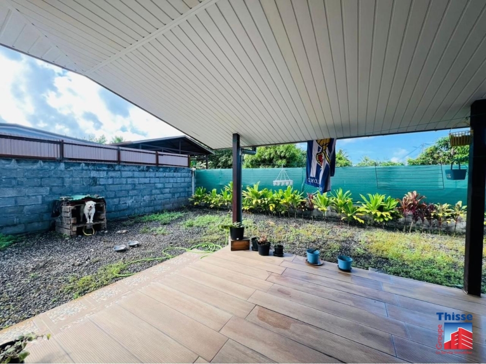Dans une servitude calme côté mer à proximité de Taravao, belle maison F3 de 86m2 comprenant un grand salon donnant sur une cuisine aménagée, 2 chambres dont une parentale ( avec salle d'eau) et une salle d'eau indépendante.