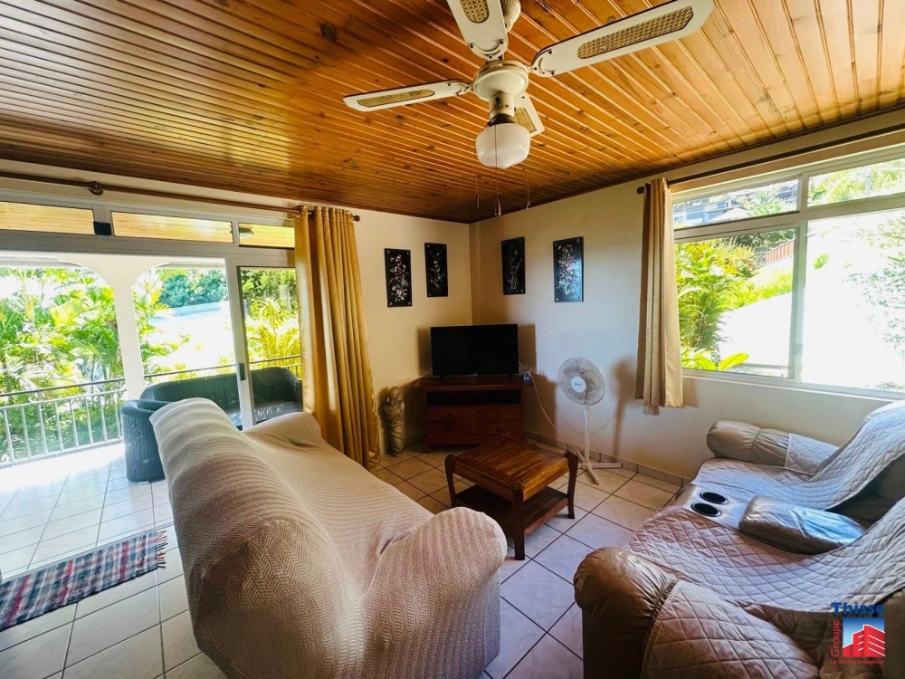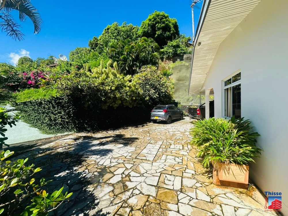 Dans un lotissement calme en petite hauteur sur un terrain de 943m2, belle maison F4 de plain-pied de 102m2 comprenant une cuisine aménagée et équipée ouverte sur le salon, trois chambres climatisées, une salle d'eau, une buanderie, un WC indépendant et un garage couvert de 20m2.