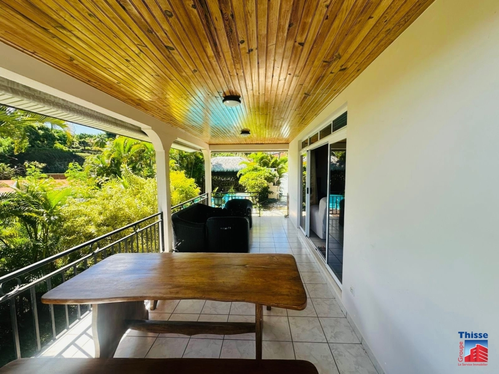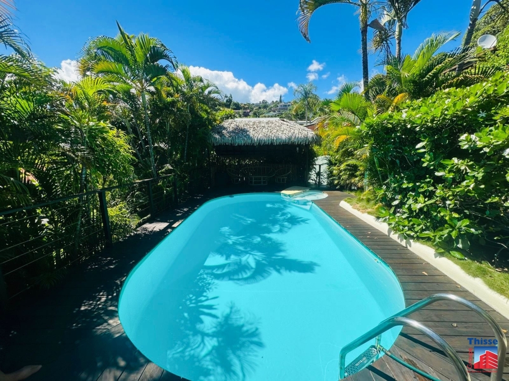La maison dispose d'un deck d'environ 40m2 avec Piscine et fare pote'e.